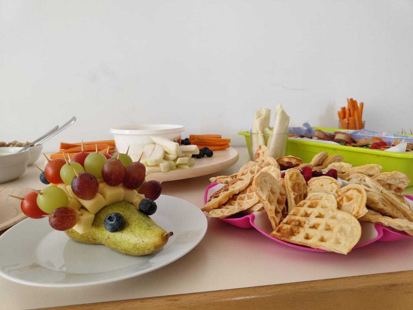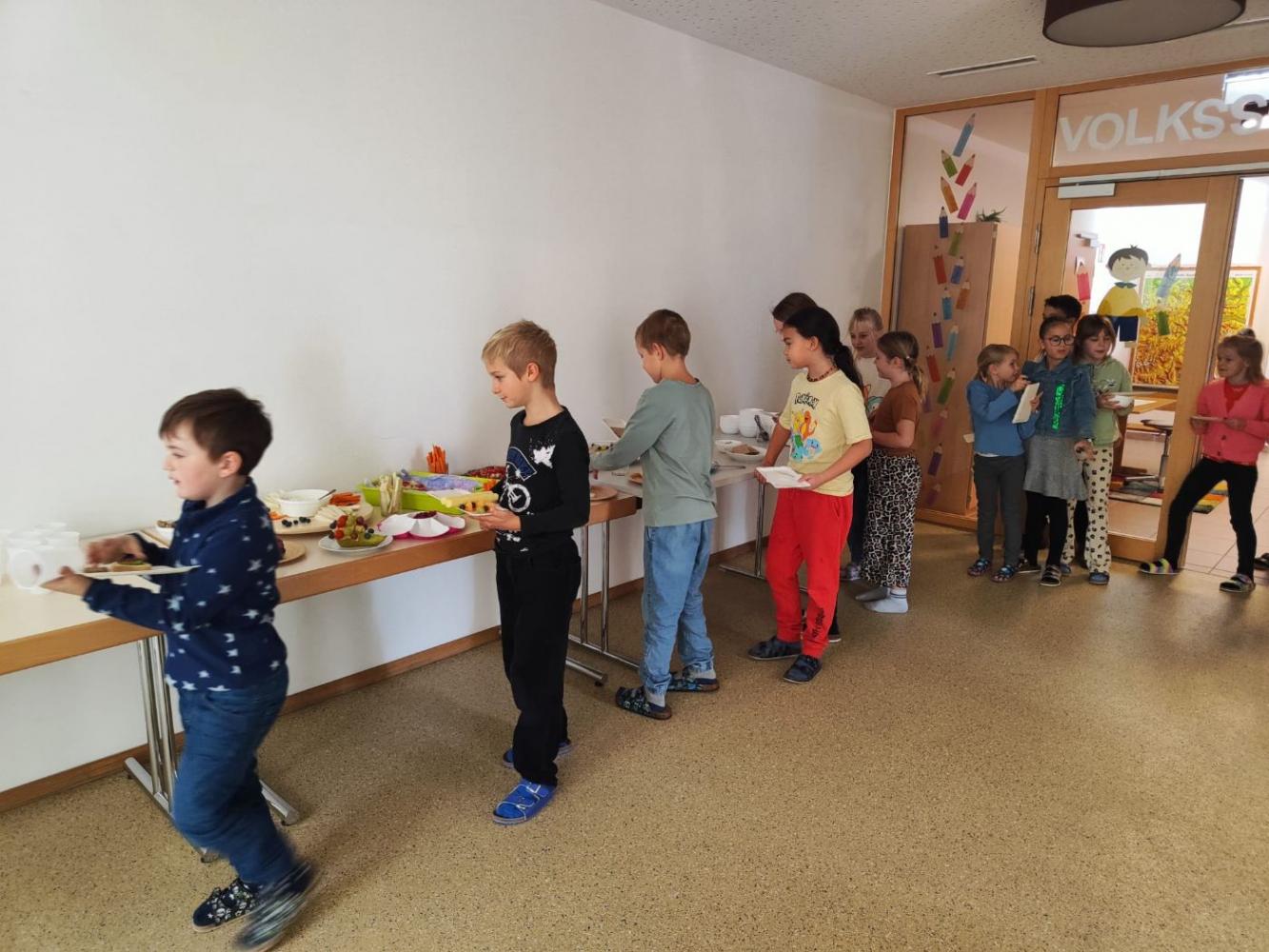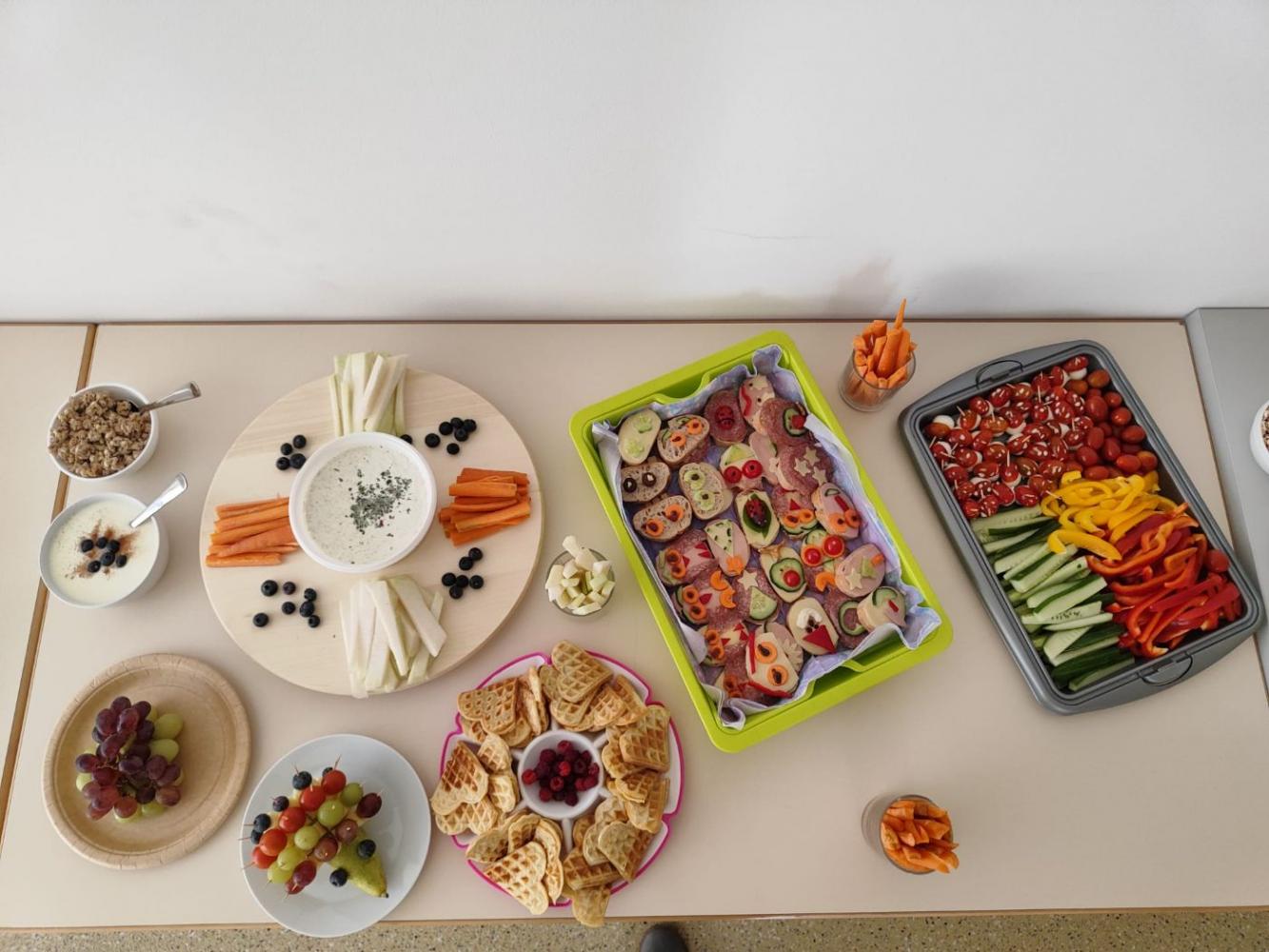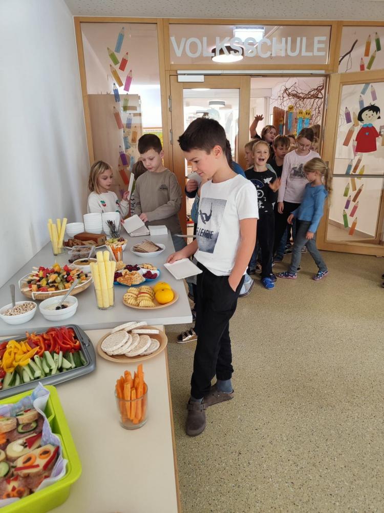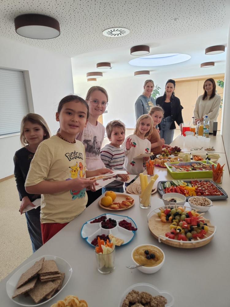 Mit viel Liebe und Freude haben die Eltern unserer Kinder eine köstliche gesunde Jause zubereitet. Frisches Obst, knackiges Gemüse und viele andere Leckereien – liebevoll angerichtet und mit Begeisterung genossen!
